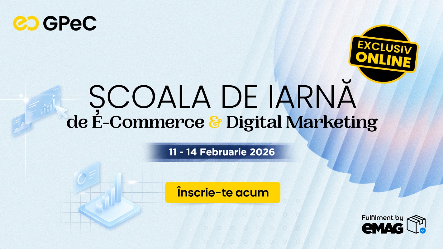 Școala de Iarnă GPeC este seria de cursuri, prezentări și dezbateri pe cele mai importante subiecte de E-Commerce și Digital Marketing care se va desfășura exclusiv online pe Zoom, în perioada 11-14 februarie 2026, astfel încât participanții să poată accesa evenimentul de oriunde ar fi.