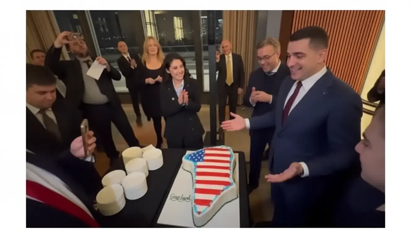 Liderul AUR, George Simion, a fost surprins într-un videoclip în Statele Unite în timp ce taie un tort în formă de Groenlanda, decorat cu steagul american, în timpul unei vizite alături de conservatori republicani.