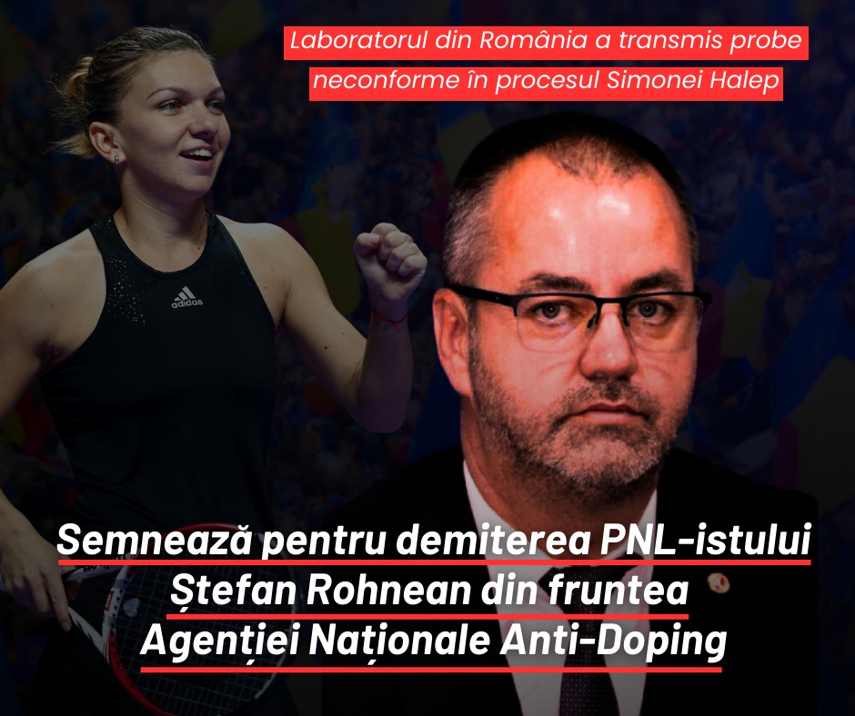 Laboratorul din România a trimis probe neconforme în procesul Simonei Halep! Semnează petiția pentru demiterea PNL-istului Ștefan Rohnean din fruntea Agenției Naționale Anti-Doping (ANAD), ca urmare...