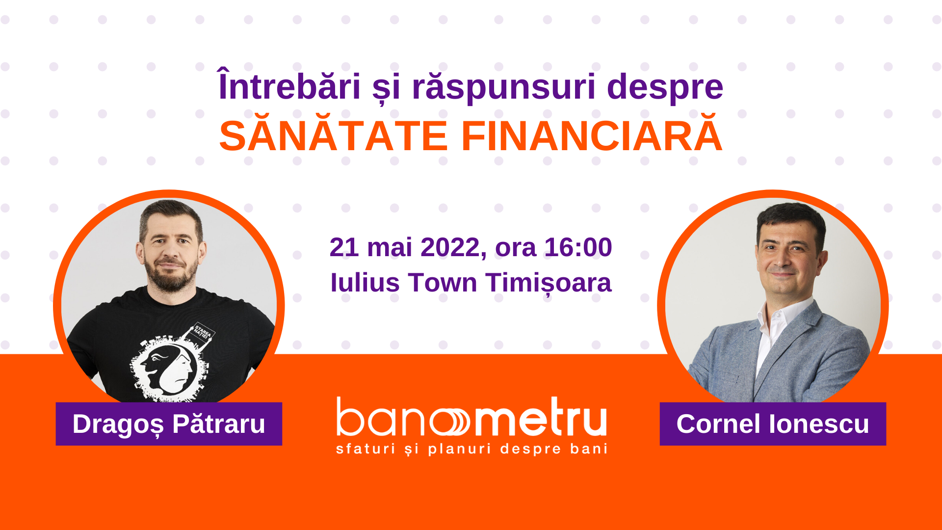 Echipa programului gratuit de sănătate financiară Banometru, alături de Dragoș Pătraru, Starea Nației, își anunță prezența în Timișoara, la Iulius Town, pe 20 și 21 mai,...